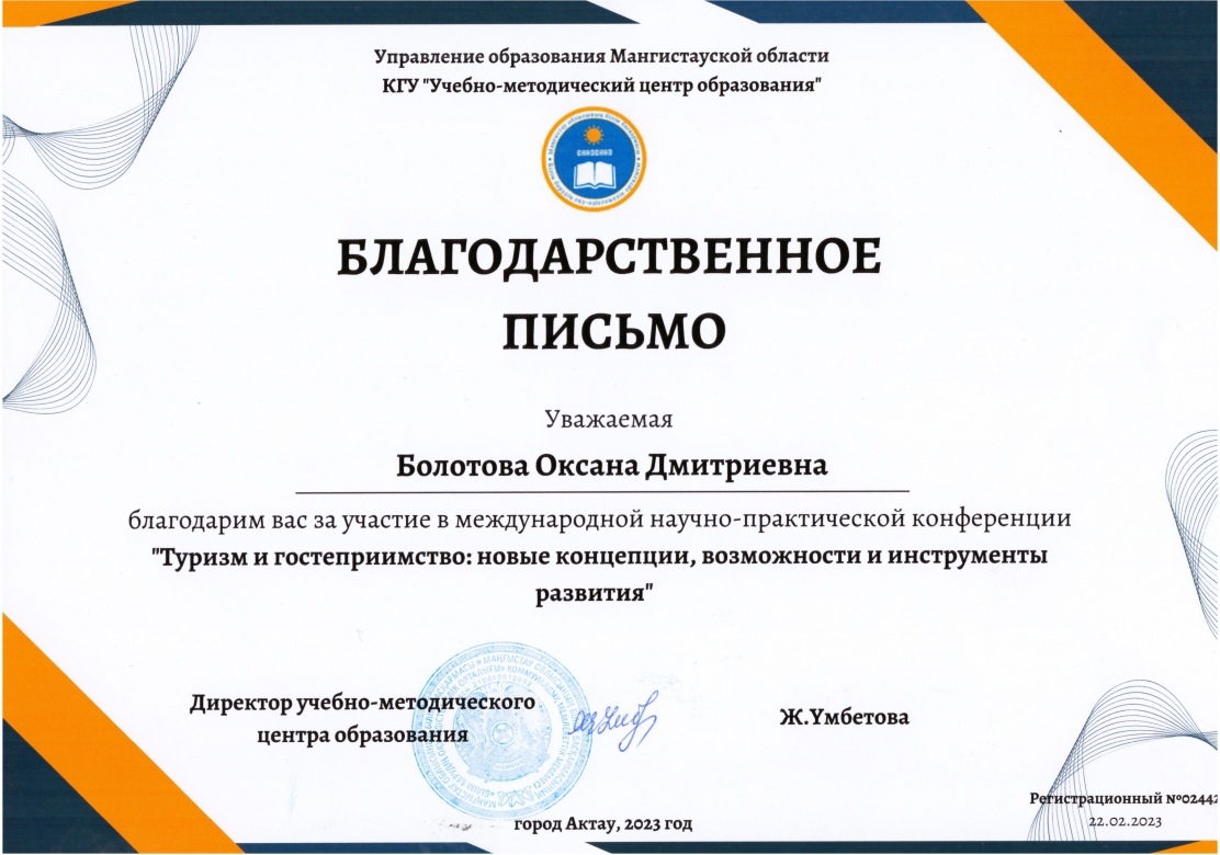 В конце февраля в Казахстане прошла международная научно-практическая конференция для преподавателей и студентов на тему "Туризм и гостеприимство: новые концепции, возможности и инструменты развития" . Организатором конференции выступил Мангистауский колледж туризма (город Актау).